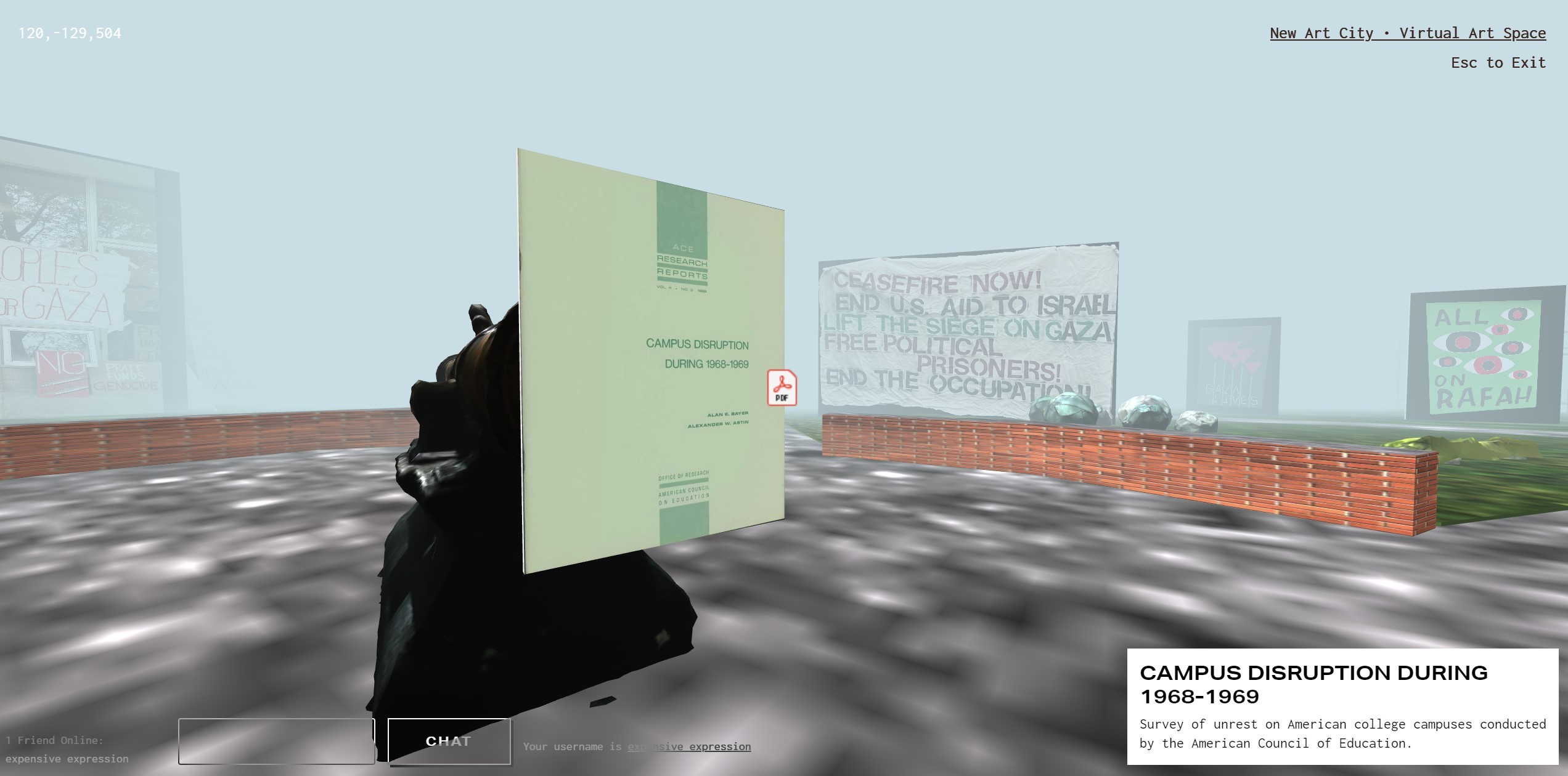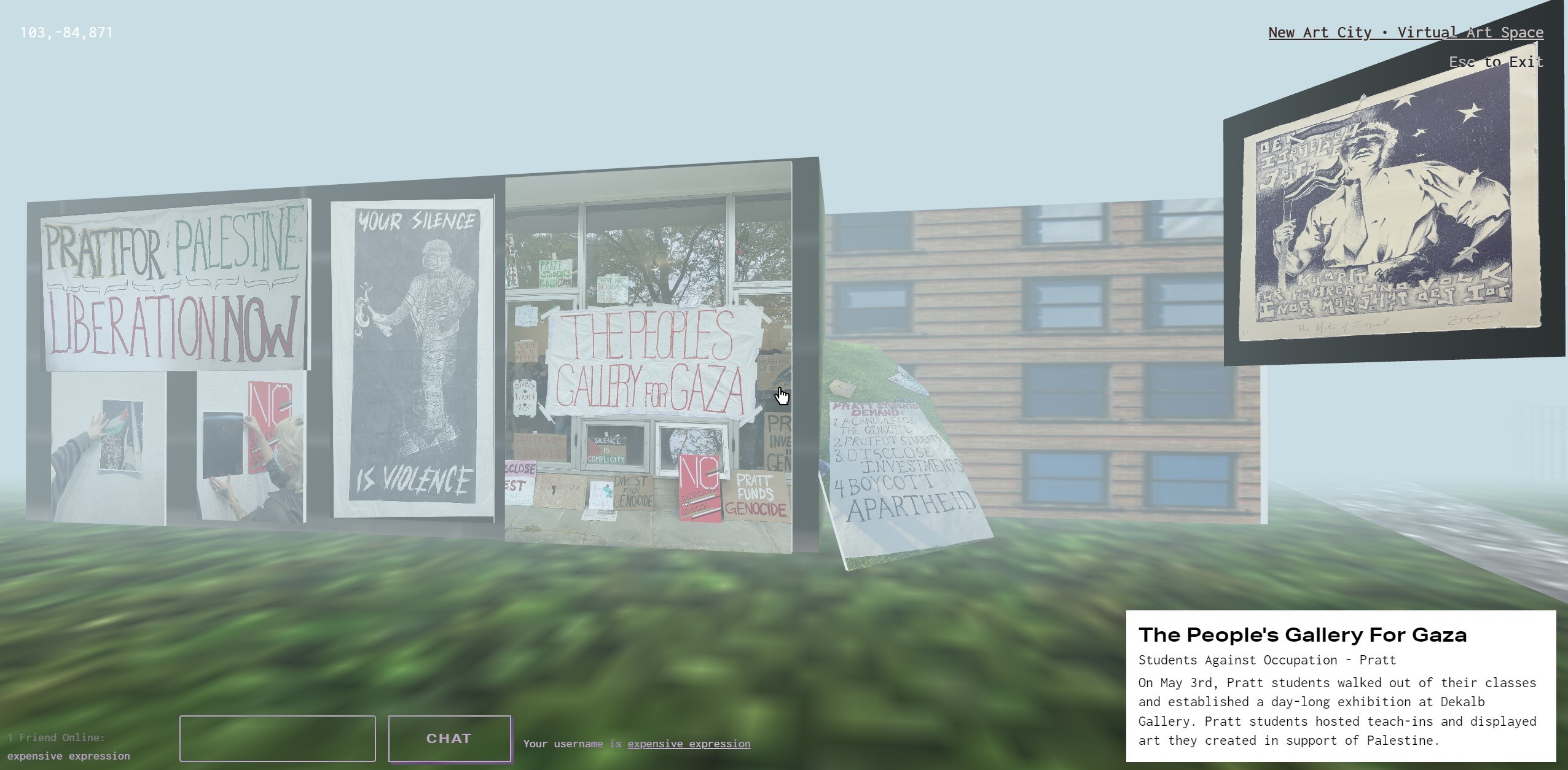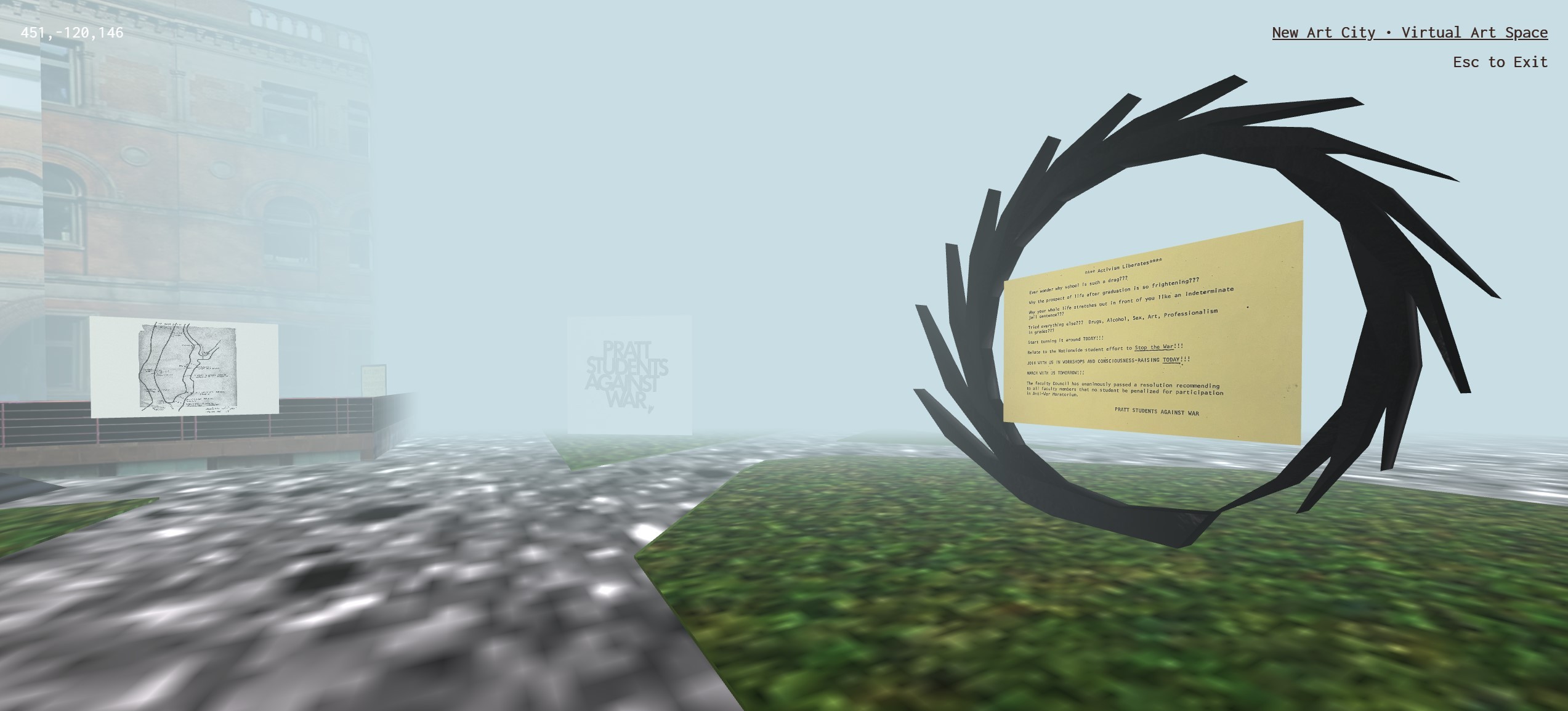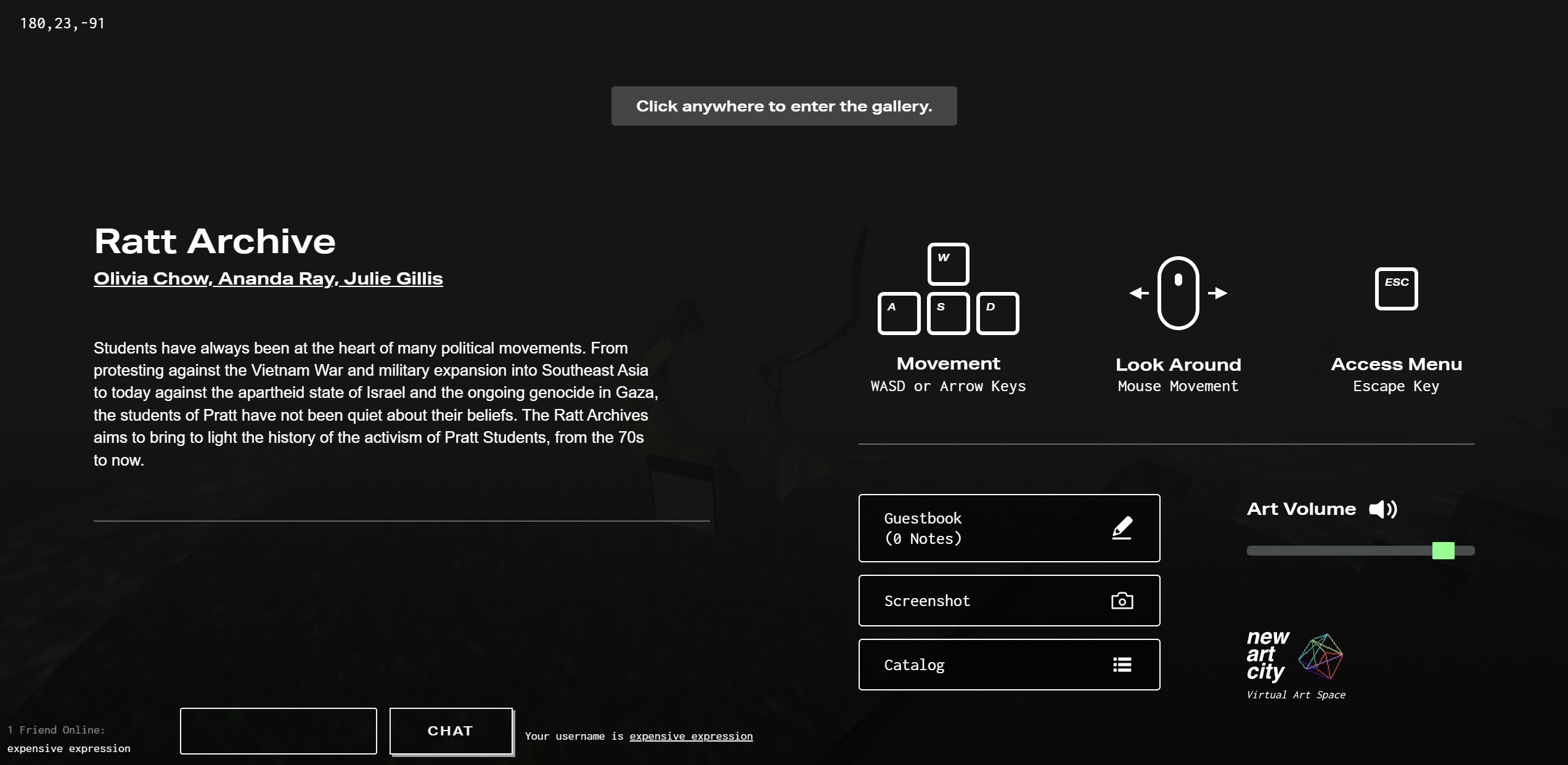 The Ratt Archives is a digital exhibition that maps the unbroken lineage of student activism at Pratt Institute, from the anti-war protests of the 1970s to the current solidarity movements for Gaza.The experience unfolds as a spatial metaphor: it begins in the digital "Library," where archival student drawings, news clippings, and correspondence establish the historical foundation. As the viewer navigates toward "Dekalb Hall," the ambient soundscape swells with recorded chants and protest sounds from Pratt's past, layering history with palpable presence. The Pratt Cannon serves as a pivotal interactive, firing a nationwide report on campus disruptions (1968-69), linking Pratt's story to a national moment. The journey culminates at the "People’s Gallery for Gaza," featuring contemporary art-builds and digital solidarity encampments—transforming archival memory into immediate, collective action.This exhibition uses the digital space as a new ground for assembly and witness against the ever-growing wave of online censorship.
